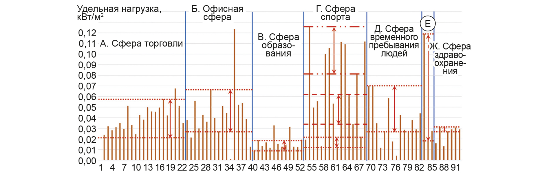 Развитие электротехнологий и повышение энергоэффективности электрических приборов приводит к снижению максимальной электрической нагрузки потребителей. Действующие нормативы для определения расчетных электрических нагрузок общественных зданий, приведенные в РД 34.20.185-94 и СП 256.1325800.2016, не обновлялись более 30 лет. В статье предпринята попытка актуализации методики определения расчетных электрических нагрузок массово сооружаемых общественных зданий селитебных территорий систем электроснабжения городов. Определены типы общественных зданий, для которых необходимо нормировать электрические нагрузки. В качестве исходных данных сформирован массив почасового электропотребления за 3 года по 91 общественному зданию различного назначения. Получено, что фактические максимальные нагрузки существенно меньше действующих нормативов. В условиях современного неоднотипного строительства зданий определено, что удельные электрические нагрузки целесообразно определять на квадратный метр общей площади зданий. На основе рассчитанных удельных электрических нагрузок зданий предложены новые нормативы электрических нагрузок. Применение новых нормативов позволит повысить энергоэффективность вновь сооружаемых линий электропередачи и трансформаторов понижающих подстанций.