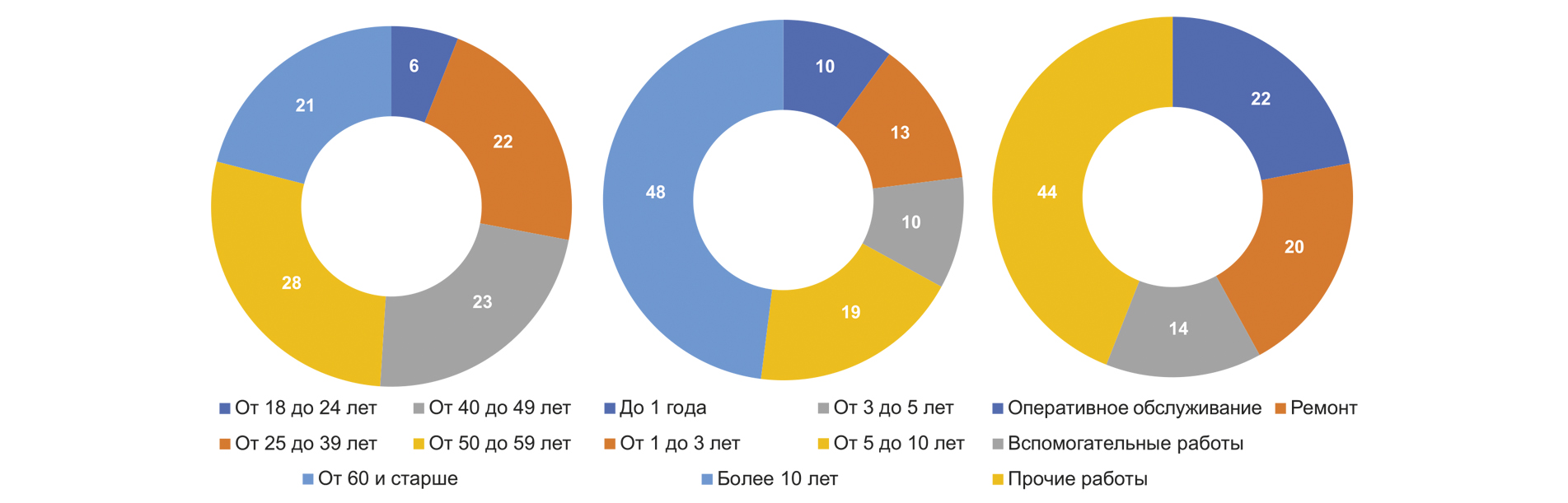 На 57,1% выросло количество пострадавших, имеющих стаж работы 5 до 10 лет, и на 31,2% — имеющих стаж работы до 1 года, что указывает на необходимость уделять особое внимание поддержанию соответствующего уровня квалификации возрастных работников и работников, имеющих минимальный стаж и опыт работы, в том числе с помощью применения инструментов независимой оценки квалификации (рисунки 2 и 3).