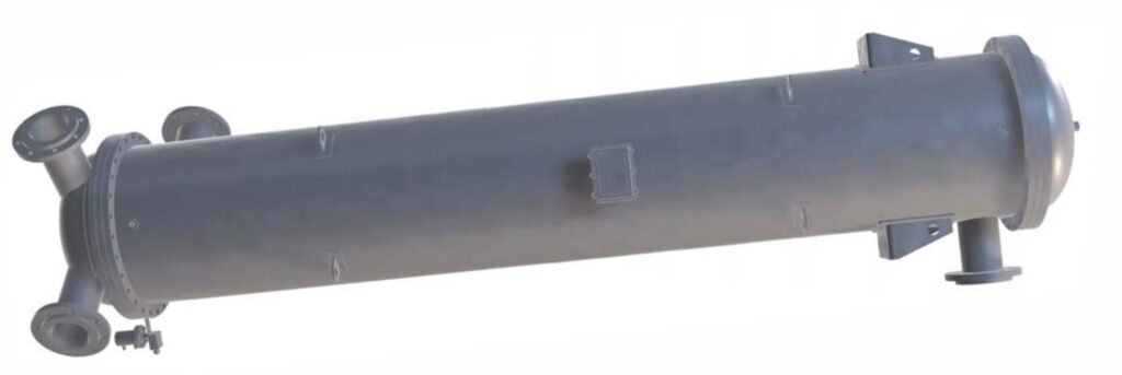 Одним из самых распространенных типов водомасляных теплообменников являются кожухотрубчатые. Внешний кожух представляет собой цилиндрический сосуд, в котором размещается пучок труб. Теплообмен между маслом (охлаждаемой средой) и водой (охлаждающей средой) происходит через стенки теплоотдающих элементов, в качестве которых используются гладкие или оребренные трубы. Как правило, вода циркулирует внутри трубочек, а трансформаторное масло — в межтрубном пространстве.