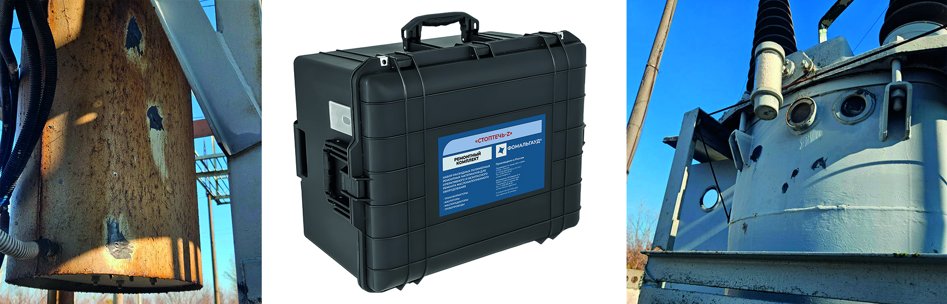 Для оперативного решения свехсрочных задач, связанных с внешним воздействием на силовое энергетическое оборудование, «Специальный Фонд Ремонтных Решений» разработал уникальные аптечки, которые позволяют ликвидировать повреждения за минуты.