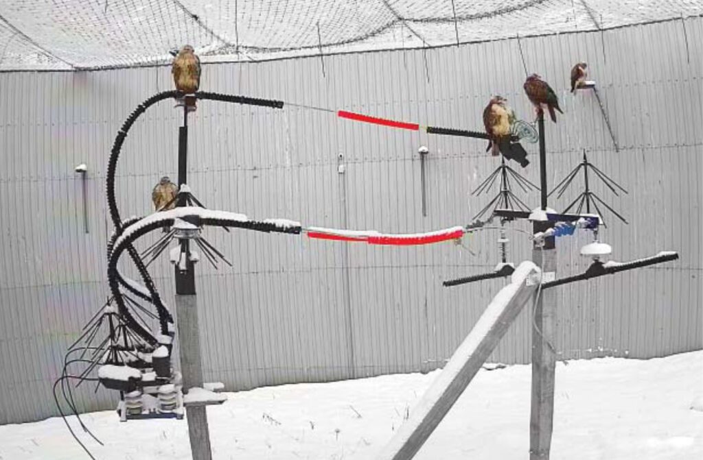 Рис. 1. Натурно-стендовые испытания ПЗУ ООО «Эко-НИОКР» в вольере Русского соколиного центра ФГБУ «ВНИИ Экология» (летний аспект)
