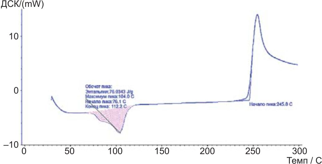 Исследование химического состава изоляционных композиций проводилось методом термического анализа (дифференциально-сканирующая калориметрия — ДСК). Данный метод позволяет по форме ДСК-термограммы определить величину температуры окислительной индукции (Tои), сделать заключение о содержании и активности антиоксиданта, температуре плавления и степени кристалличности материала. Результаты измерений представлены на рисунках 3–5.