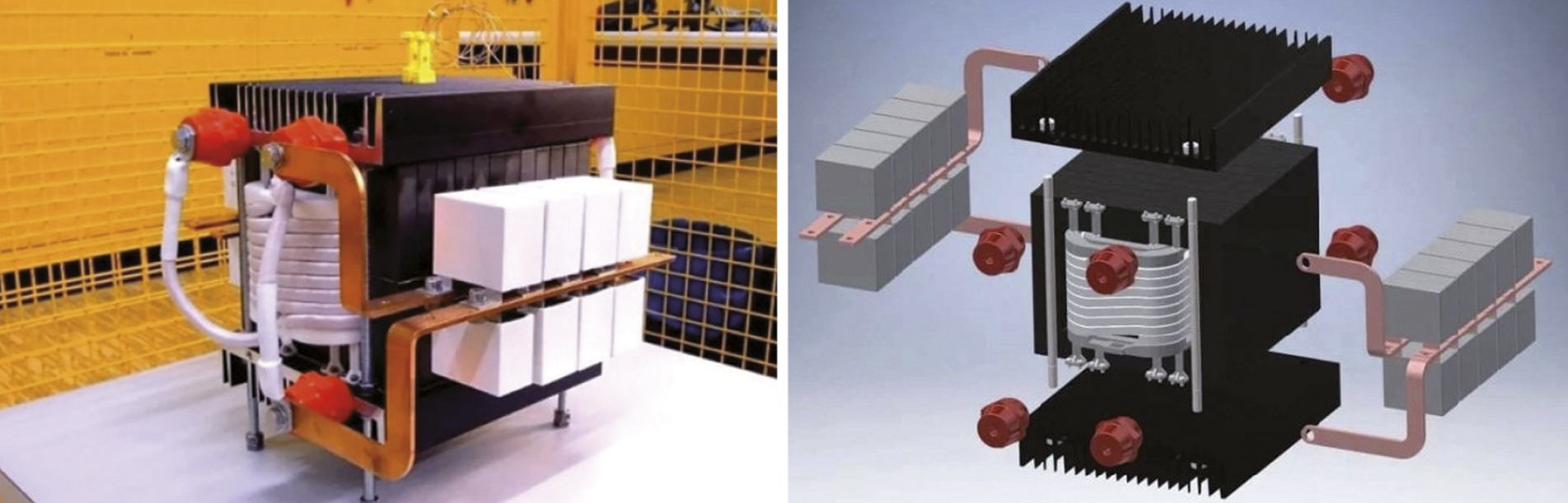 В последние годы с развитием возобновляемых и распределенных источников электроэнергии и ростом их внедрения в распределительных сетях, особенно за рубежом, на смену классическим трансформаторам, конструкция которых не менялась на протяжении более века, приходят твердотельные силовые электронные трансформаторы (SST). Они представляют новое поколение преобразовательной техники, использующее силовые полупроводниковые элементы и системы управления, позволяющие реализовать функции, недоступные традиционным силовым трансформаторам. SST способны динамически адаптироваться к изменяющимся параметрам сети, компенсировать гармонические искажения напряжения, обеспечивать гальваническую развязку сетей разных номинальных напряжений, имеют компактные размеры и меньший вес (рисунок 3) [20]. Они могут напрямую взаимодействовать с цепями постоянного тока. Вместе с тем для них приходится разрабатывать специальные схемы защиты от импульсных перенапряжений от грозовых разрядов и коммутационных переключений.