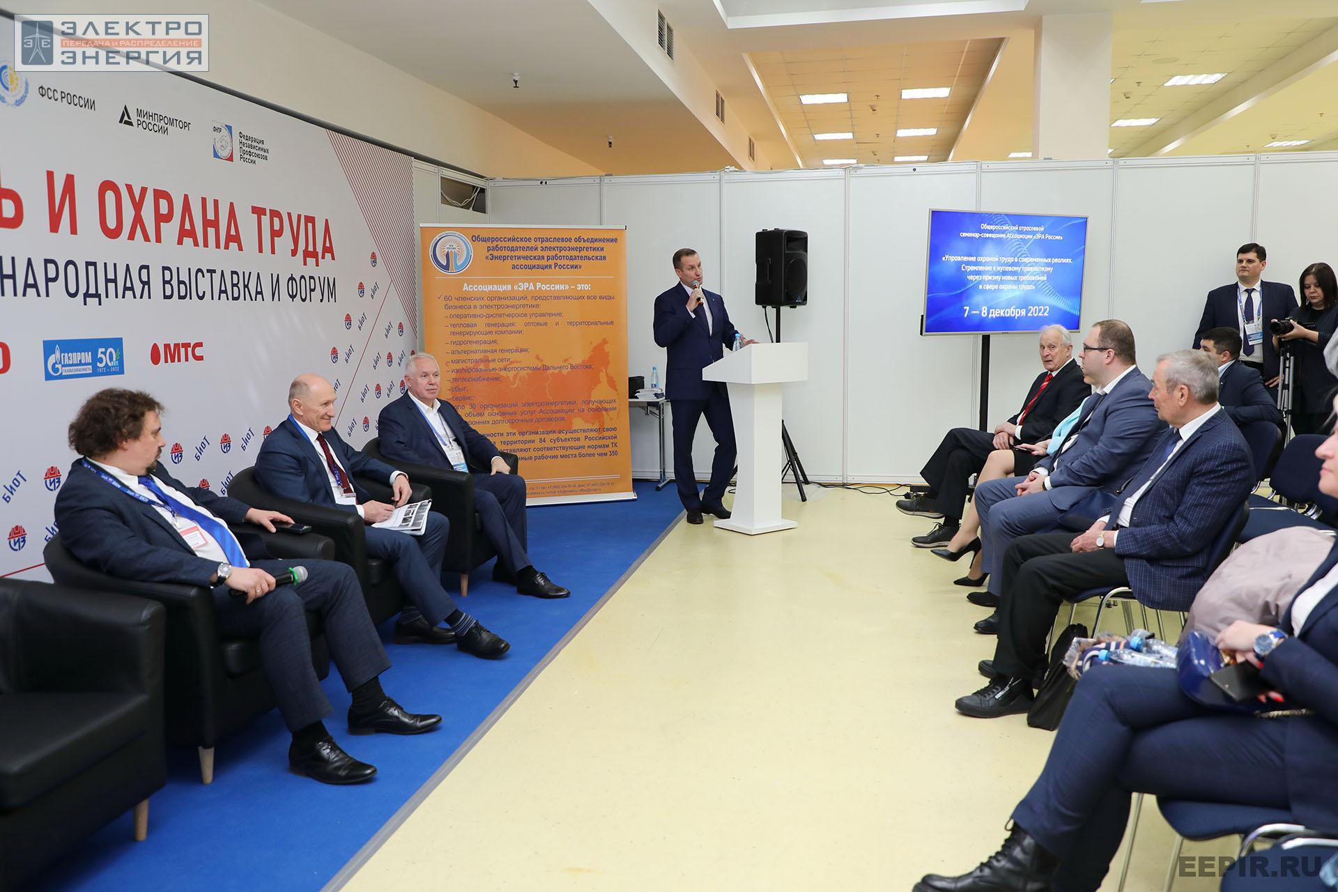 7–8 декабря на площадке выставки и форума состоялся Ежегодный общероссийский семинар-совещание «Управление охраной труда в современных реалиях. Стремление к нулевому травматизму через призму новых требований в сфере охраны труда в электроэнергетике», организованный Ассоциацией «ЭРА России». В его рамках прошло заседание Комитета по вопросам охраны труда Ассоциации «ЭРА России». На заседании Президентом Ассоциации «ЭРА России» Аркадием Замосковным и Президентом Ассоциации «СИЗ» Владимиром Котовым было подписано Соглашение о взаимодействии. С докладами на семинаре выступили директор филиала ПАО «Россети» — Центр технического надзора Ольга Зуйкова, заместитель начальника управления «Ростехнадзора» Евгений Бибин, советник генерального директора ФГБУ ВНИИ Труда Минтруда России Игорь Цирин, заведующая кафедрой инженерной экологии и охраны труда НИУ «МЭИ» Ольга Кондратьева и другие. Семинар стал площадкой для плодотворного общения специалистов по охране труда и производственной безопасности (ОТ и ПБ) российских электросетевых организаций.