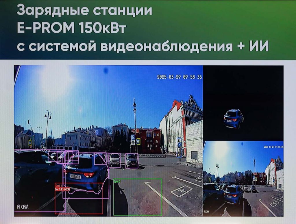 Первая «умная» электрозаправка была запущена в августе 2025 года, рассказал коммерческий директор E-PROM Марат Нургалиев: «Система распознает различные препятствия перед зарядной станцией, будь то сугроб или другие объекты. Эта информация может оперативно передаваться как владельцу станции, так и пользователям через мобильное приложение, предупреждая о невозможности подъезда к ЭЗС. Кроме того, система распознает государственные номера транспортных средств, что дает дополнительные возможности для мониторинга».