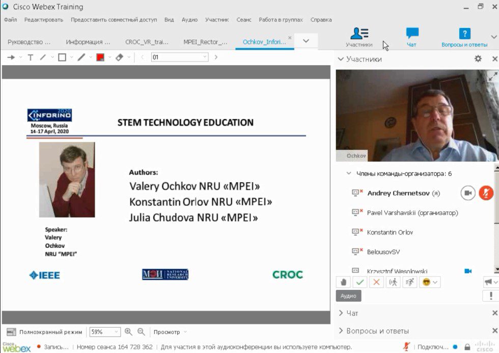 С 14 по 17 апреля 2020 г. в Национальном исследовательском университете «МЭИ» прошла V Международная научно-практическая конференция «Информатизация инженерного образования (Inforino 2020)». На конференции рассматривались актуальные вопросы применения информационных технологий в образовании – в инженерных и научно-технических расчетах, при обработке экспериментальных данных, для организации удаленного доступа к лабораторному и производственному оборудованию, при разработке электронных ресурсов и в дистанционном обучении по естественно-научным и инженерным дисциплинам. Отдельная секция была посвящена вопросам, связанным с Индустрией 4.0 и кибербезопасностью. В конференции приняли участие докладчики из стран Европы, Азии и Америки.