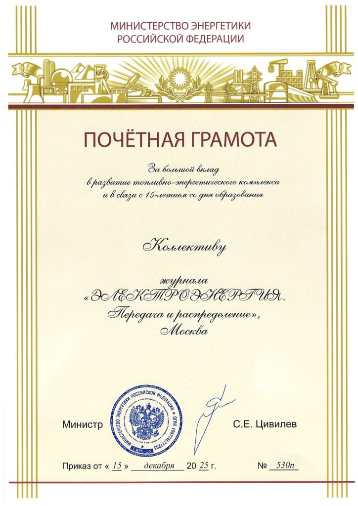 Сердечно поздравляю издательство журнала «ЭЛЕКТРОЭНЕРГИЯ. Передача и распределение» с десятилетним юбилеем! На протяжении всех лет своей активной работы Вы профессионально и достоверно освещаете ключевые события в российской и мировой электроэнергетике. Благодаря разностороннему информационному контенту, публикуемому в журнале, специалисты электросетевых компаний и других организаций электроэнергетики и промышленности имеют возможность получать исчерпывающие сведения, необходимые в повседневной работе, a также для стимулирования дальнейшего технического прогресса. Уверен, что активная деловая позиция издательства и нацеленность на укрепление и расширение профессиональных связей в России и за рубежом будут и в дальнейшем способствовать укреплению авторитета журнала «ЭЛЕКТРОЭНЕРГИЯ. Передача и распределение» в профессиональных кругах, притягивать обширную аудиторию читателей и большой круг авторов. Желаю новых больших успехов в работе, крепкого здоровья всем сотрудникам издательства, членам редакционного совета и редколлегии, партнерам и читателям журнала!
